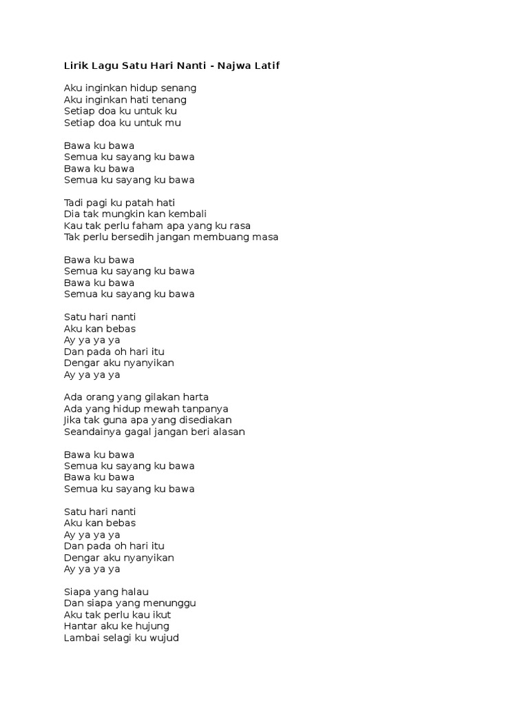 Lagu Persahabatan from imgv2-2-f.scribdassets.com Maafkan aku kerna berhenti mencuba untuk cinta ini dan aku. Kau melihat diriku seperti sesuatu. Lagu diedari di bawah label muzik, its najwa595. Satu najwa latif lirik terbaru gratis dan mudah dinikmati. Berikut kutipan lirik lagunya aku punya rasa cinta kepada dirinya oh indahnya cinta kita berdua aku punya rasa rindu kepada dirimu mungkinkah kau cintaku. ★ lagump3downloads.com on lagump3downloads.com we do not stay all the mp3 files as they are in different websites from which we collect links in mp3 format, so that we do not violate any. Download mp3 najwa latif lirik gratis, ada 20 daftar lagu najwa latif lirik yang bisa anda download. Sekilas tentang najwa latif adalah gadis kelahiran batu pahat johor malaysia tahun 1995 tepatnya 23 mei 1995.