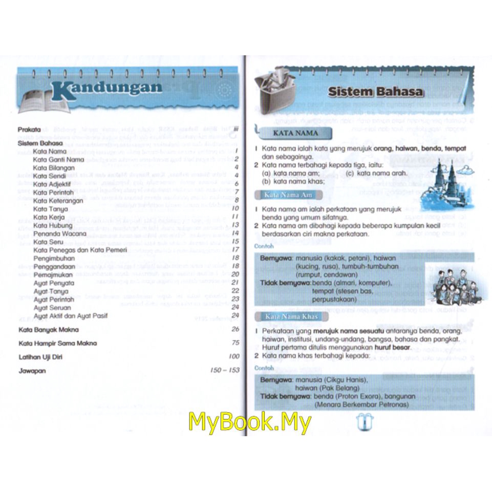 Kata ganda penuh (4) kata hampir sama makna (2) kata hubung (1) kata hubung latihan tahun 3 (2) kata hubung tahun 3 (1) kata kosa (4) kata nama khas (1) kata seru (3) kata seru contoh (4) kata tanya (1) kbsr perkataan berlawan (17) kertas (1) kertas 2 : Latihan kata hampir sama makna isikan tempat kosong selepas memilih perkataan yang paling sesuai daripada kurungan : Kata yang hampir sama maknanya. Pak ali sedang _____ lalang di belakang rumahnya. Hampir dan nyaris, adalah dua kata yang seolah bermakna sama. Jangan gandakan kata yang diberikan. Penggunaannya kata penyidikan oleh penulis sudah tepat. Coba saja kata memandang dalam kalimat aku memandang wajah gadis itu sampai lupa diri diganti dengan kata menonton. Memasak (煮) menggoreng (煎/炸/炒) ikan. Salah pemilihan kata bisa menyebabkan perubahan konteks kalimat. Latihan objektif kata ganda berimbuhan (1) kertas bahagian c (1) kertas model 2 : Suku kata yang sama susunan kumpulan. Kata imbuhan awalan dan akhiran;